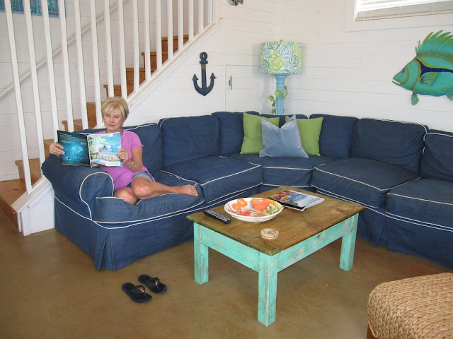 Aren't those blue concrete floors cool. I can't wait to get down there and get started. There's nothing more fun than decorating a beach house. I hope you'll come back to see the final results.